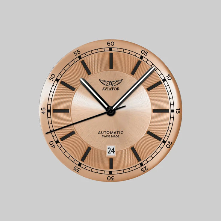 The case back, which incorporates the Douglas DC-3 cockpit rudder in its design, mimics the functionality that calculates rudder angles and controls the position of the nose and tail of the aircraft. This function is covered with a crystal that protects against scratches and impacts, in addition to providing a comfortable fit on the wrist. Precise details reflecting the aviation tradition and fine watchmaking techniques such as these are an integral part of all AVIATOR Douglas watches.