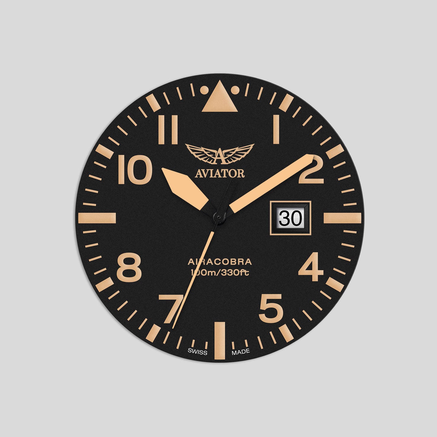 Rovnako ako toto bojové lietadlo bolo nápomocné pilotom aj misii, hodinky AVIATOR Airacobra ponúkajú rovnakú dôveryhodnú spoľahlivosť s vintage vzhľadom, inšpirovaným týmto ctihodným vojnovým hrdinom. Hodinky AVIATOR Airacobra, vyrobené z prémiových materiálov, spájajú vojenskú presnosť s klasickým vzhľadom.