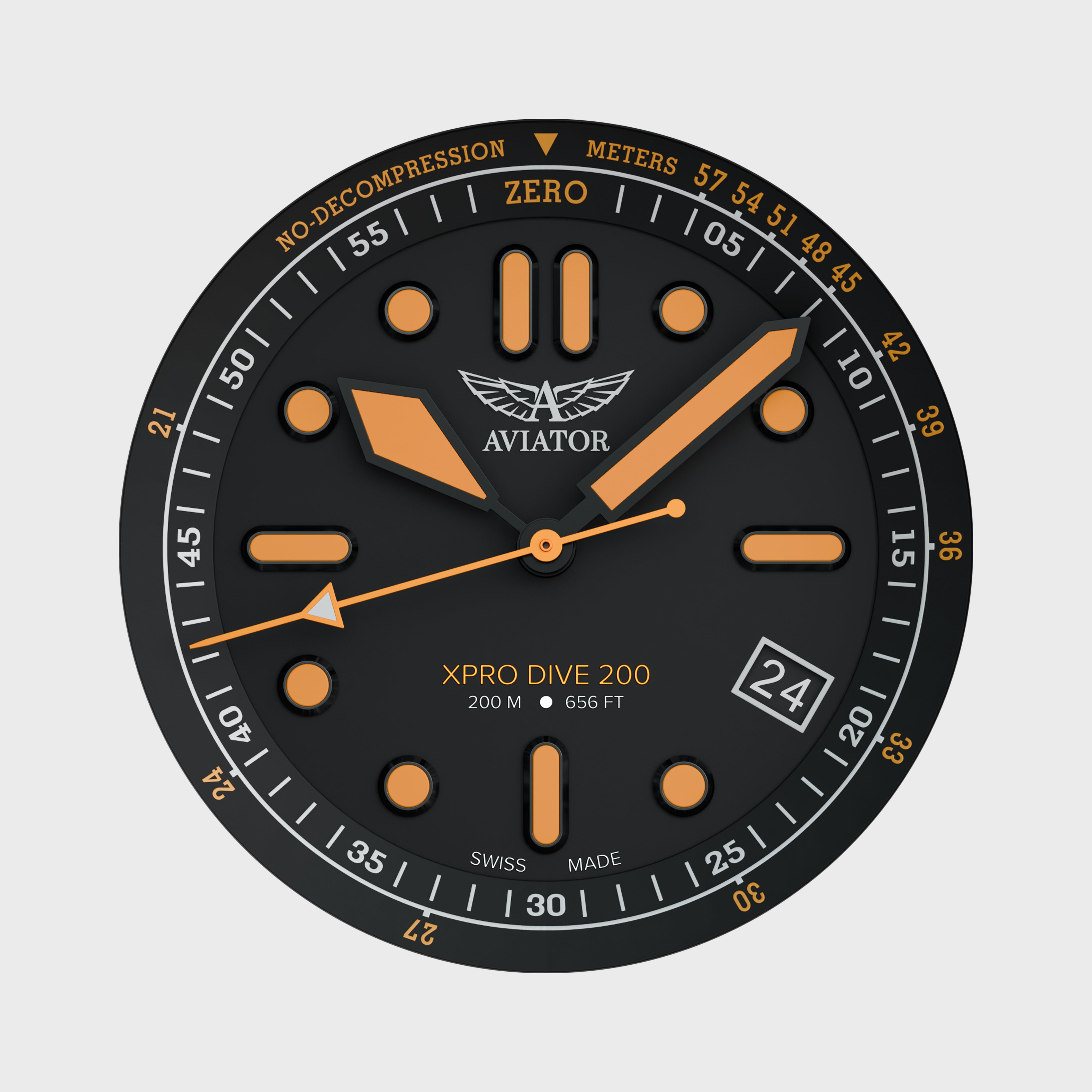 Model AVIATOR XPRO DIVE 200 je univerzálne náradie pre dve prostredia – stvorený, aby vynikal vo svete mora aj vzduchu. Jeho dvojitá tabuľka bezdekompresných limitov, inšpirovaná Navy SEALs Diving Manual, vás udrží v bezpečných časových hraniciach pri potápaní na úrovni mora aj vo vysokohorských vodách. Jednosmerná luneta poskytuje spoľahlivú ochranu a možnosť rôznych výpočtov, zatiaľ čo švajčiarska luminiscencia Super-LumiNova® X1 alebo BGW9 zaručuje dokonalú čitateľnosť ciferníka aj v absolútnej tme.