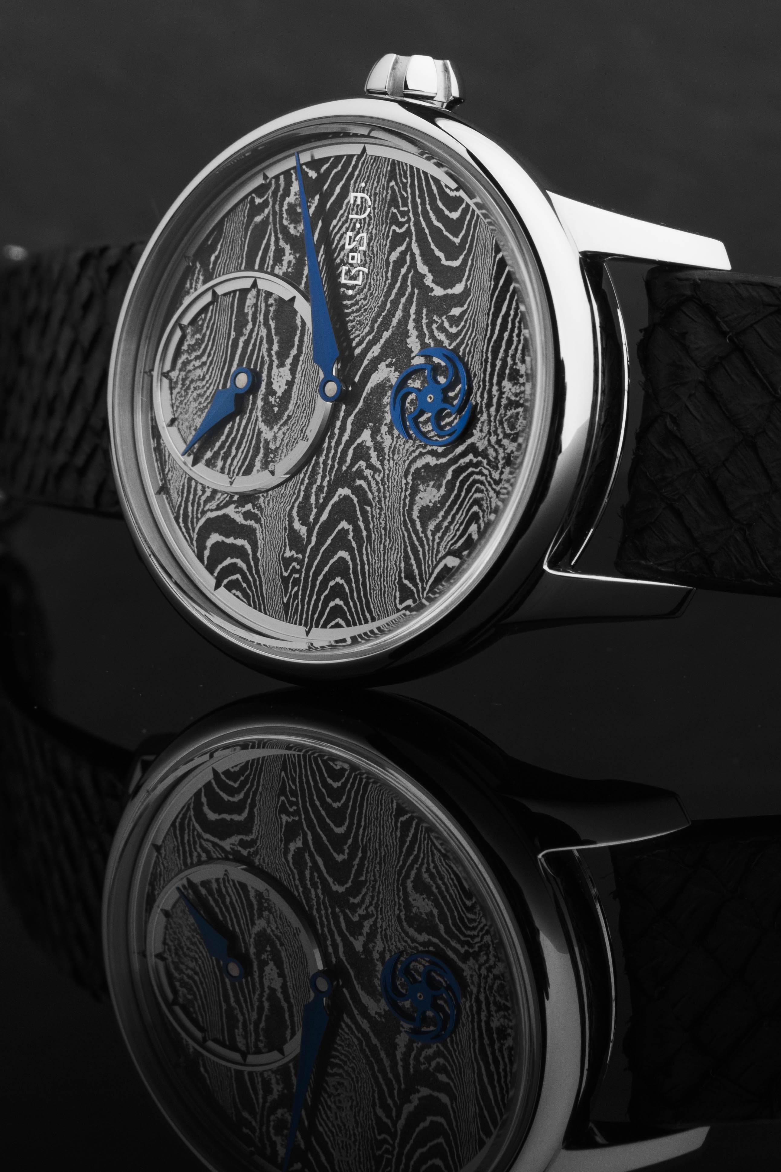 Spoločne si predstavili hodinky, ktoré by spojili podstatu oboch maisons: technickú precíznosť a estetickú kultivovanosť švajčiarskej Jury s umením švédskej kovárne, kde majstri damaškovej ocele v takmer alchymickom procese vytvárajú fascinujúce vzory a kontrasty.
